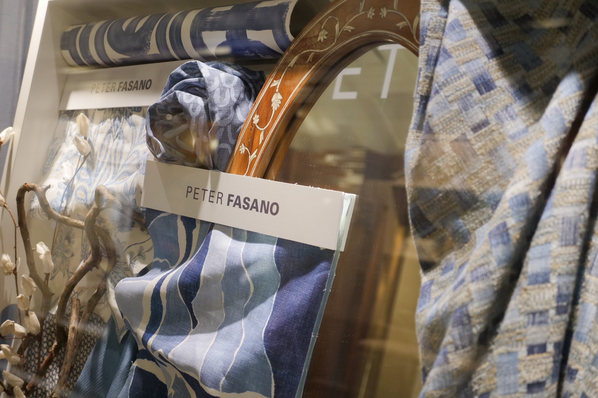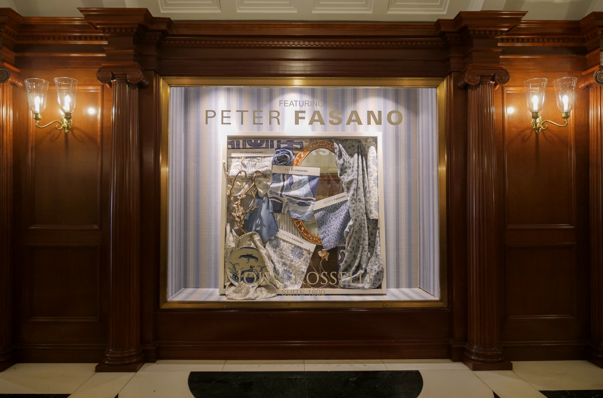 Peter Fasano’s collection of blue-and-white fabrics and wallcoverings ignited creativity inside the iconic doors of the D&D Building.